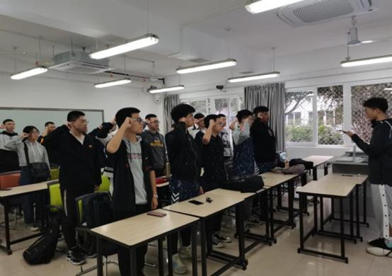 团课第二项,重温入团誓词,由组织委员樊嘉树同学带领大家再次喊出当初的誓言,一日为国之青年,便终生为国奋斗!