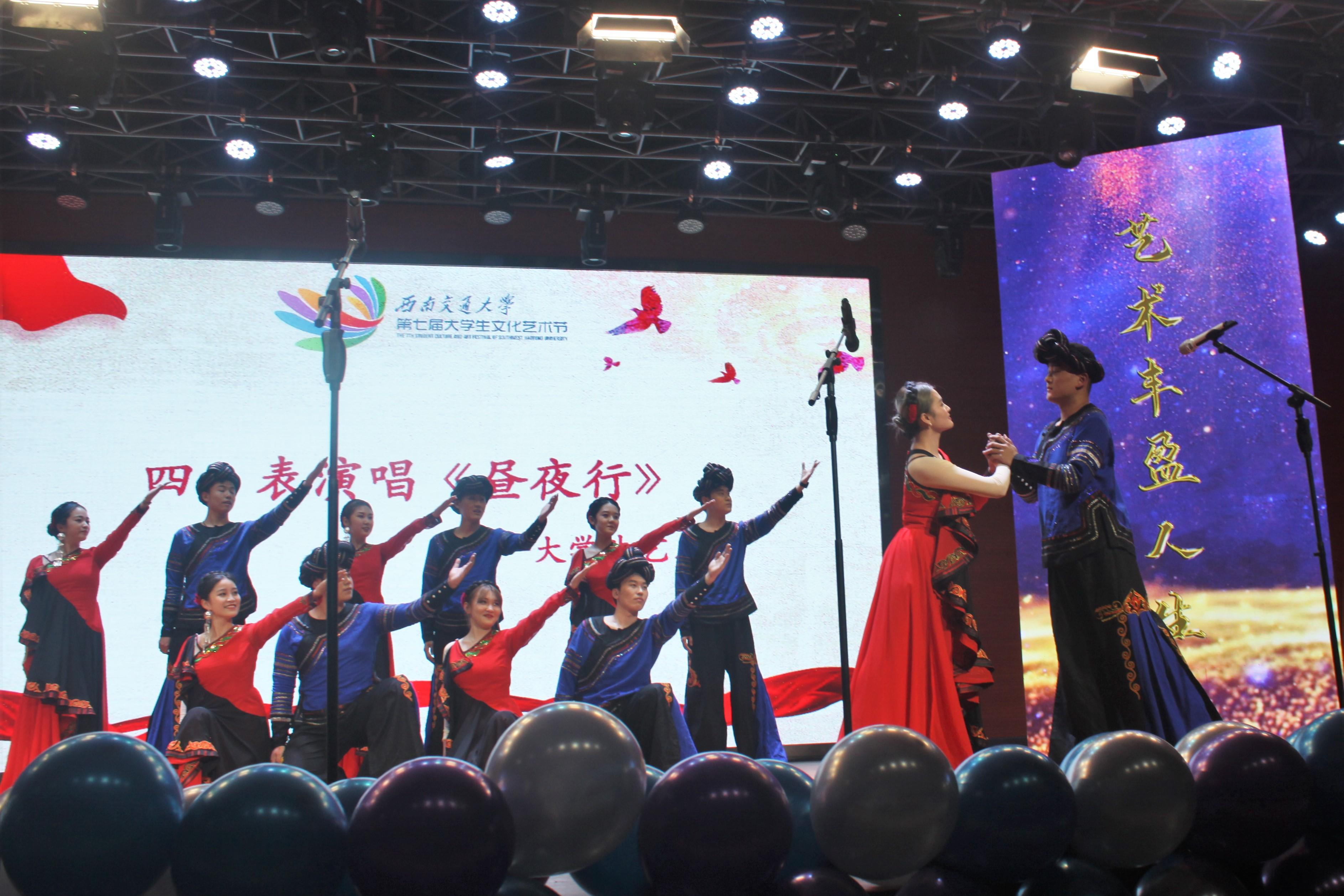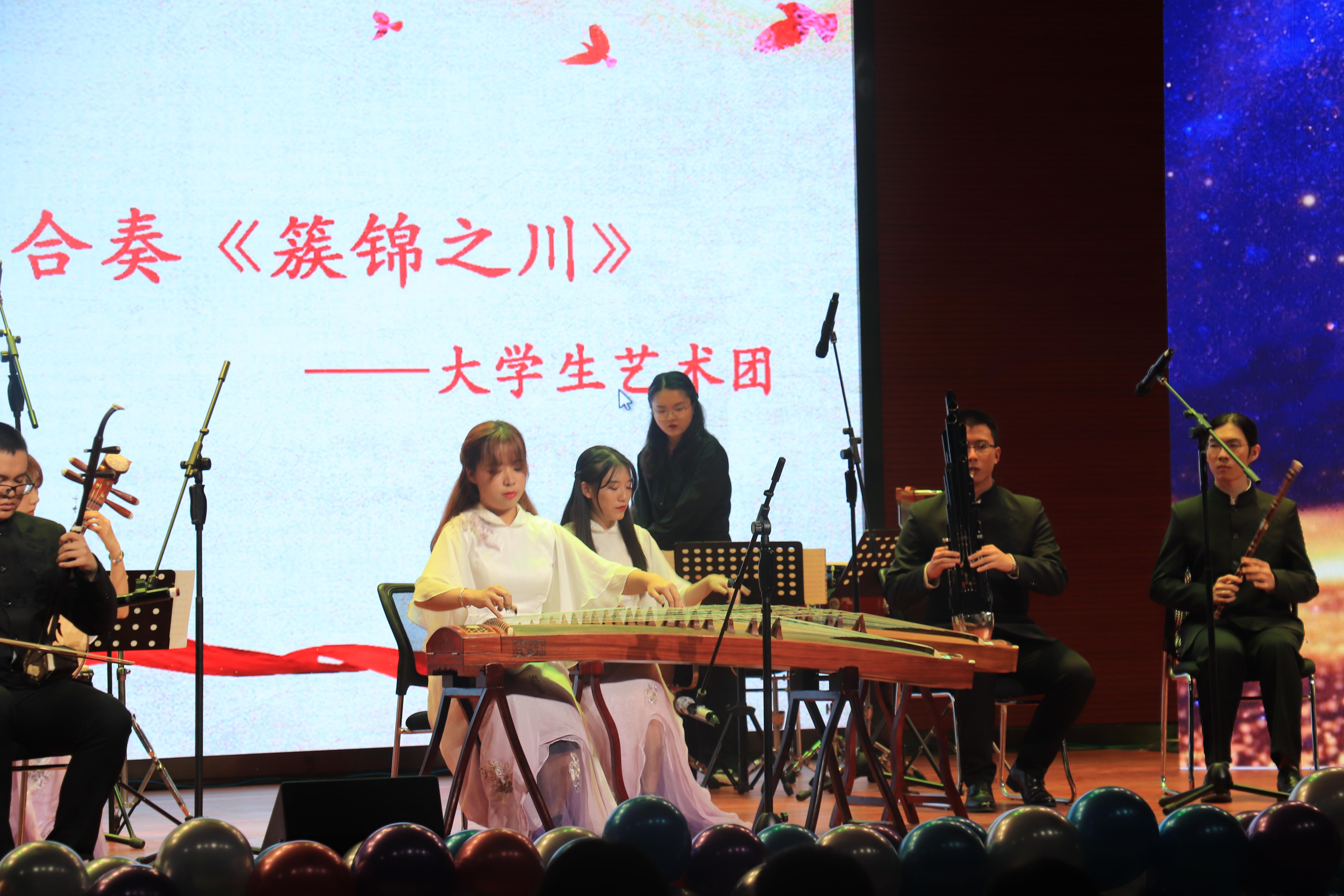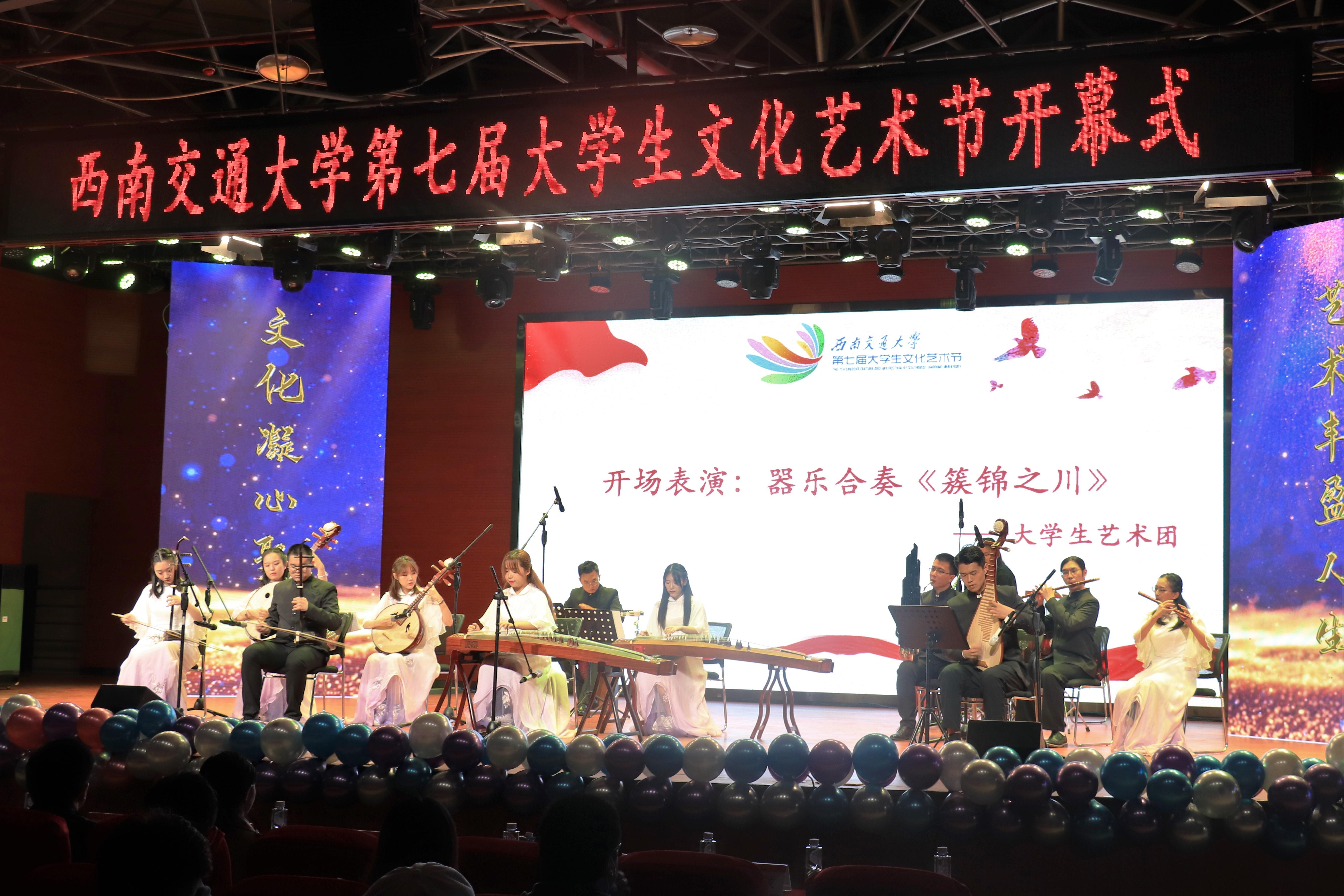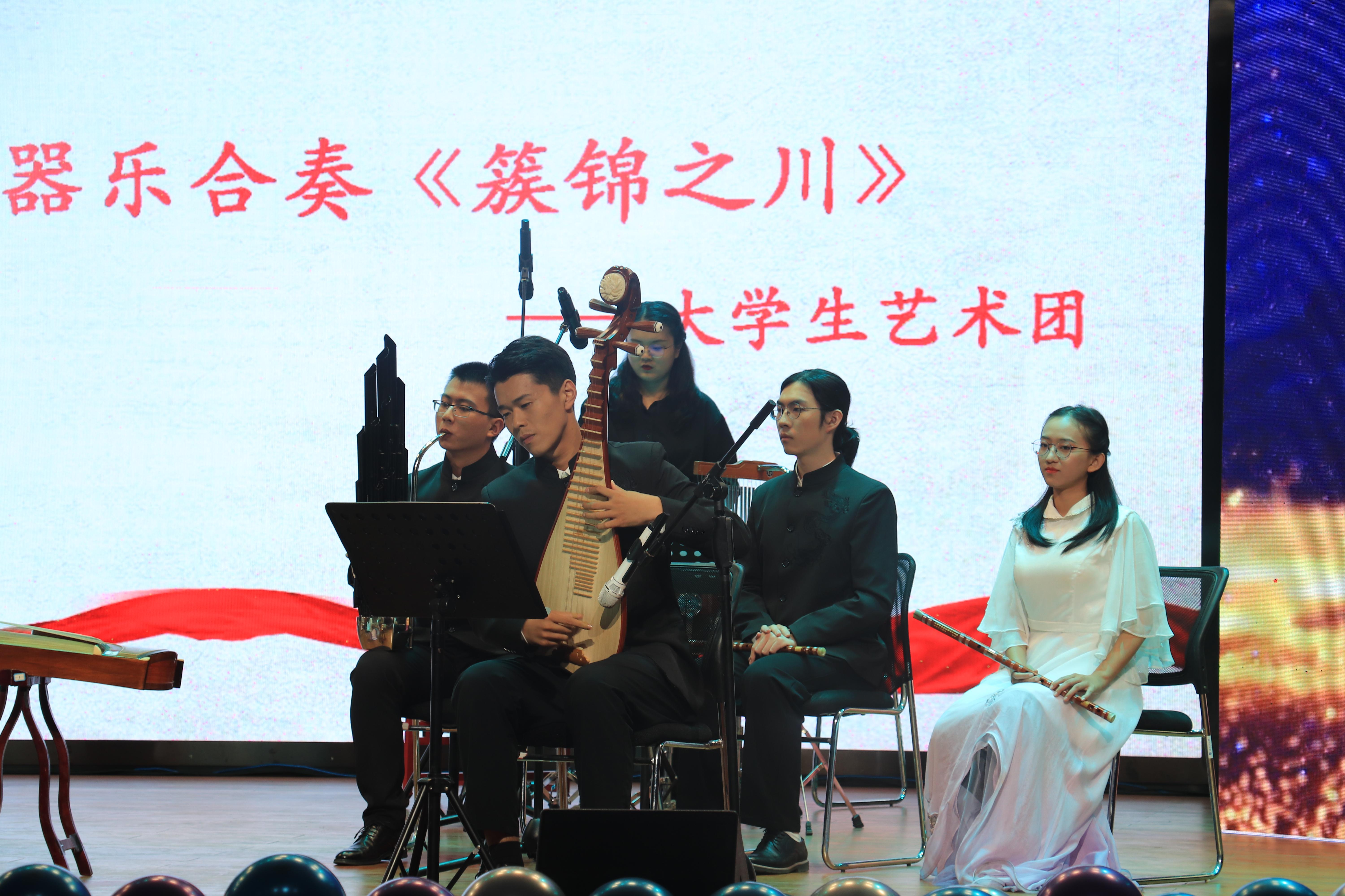 紧接着是由西南交通大学大学生艺术团带来的赏心悦目的艺术表演。大学生艺术团身着民族特色服饰,为现场观众献上绝妙的表演。其中,器乐合奏《簇锦之川》气势宏大,如钧天广乐;《昼夜行》欢快悠扬,余音绕梁。