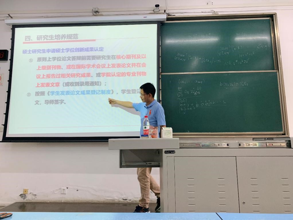 讲座的第二个环节则是杨洋教授关于研究生培养规范进行的指导交流。首先作为一个研究生应该要了解本科生与研究生的“导”与“教”的关系与区别,研究所意在指导“为什么”,更倾向于主动学习而非被动。在研究生期间,还应主动制定学习计划与检查执行情况,需在完成导师指导任务的同时,注重培养自身的兴趣和好奇心,多读、多听、多讲、多写应成为研究生生活常态。最后,杨洋教授就研究生开题论证、研究生培养过程环节时间节点要求、硕士学位创新成果认定、研究生毕业环节要求和安排、论文典型问题及其他相关制度等话题与同学们做了深刻的交流,要求同学们一定要端正学术态度与学术行为。同学们认真聆听,为将来发表学术论文打下了基础。