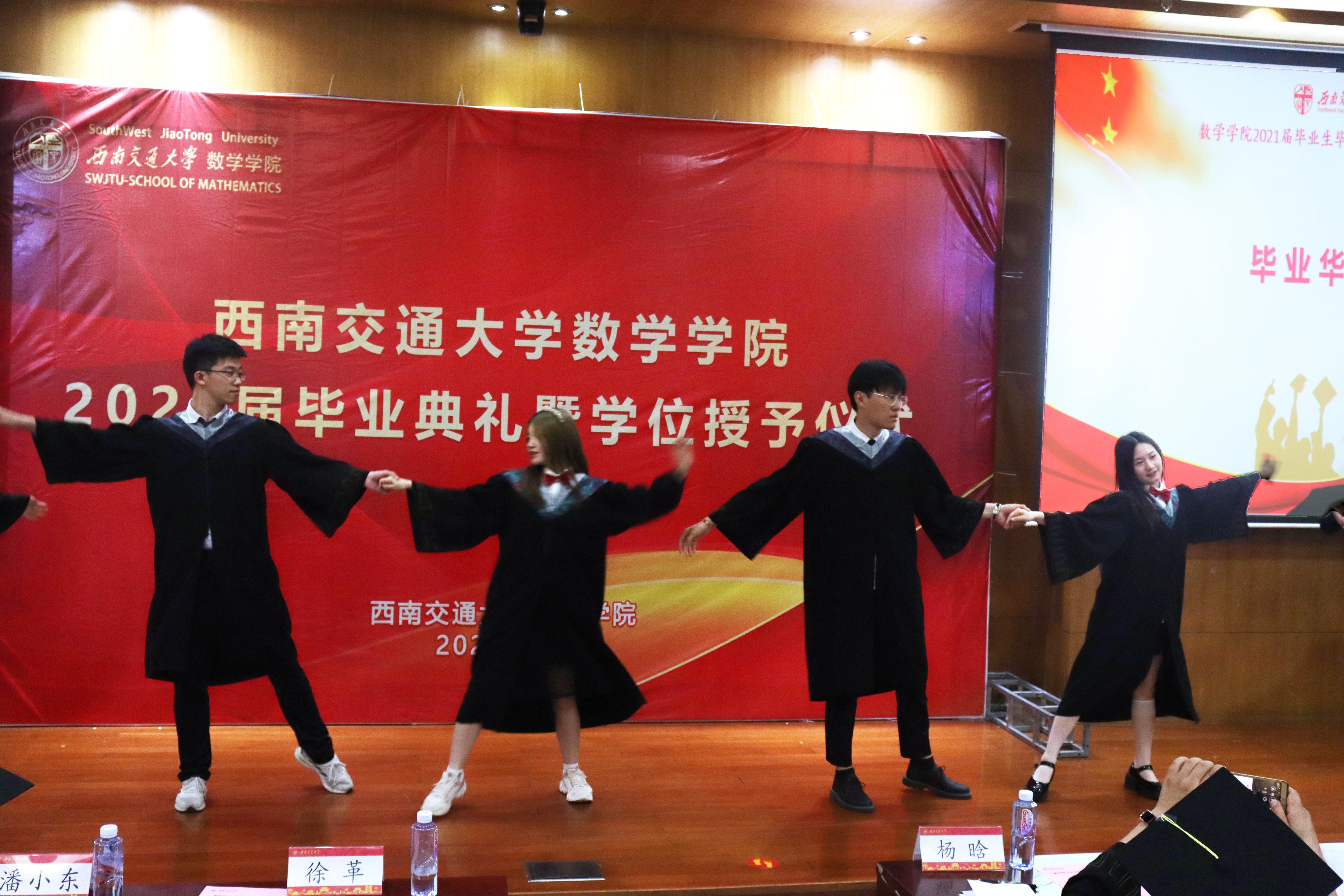 在典礼的最后,毕业生代表们为大家送上华美的华尔兹表演与美妙动听的歌曲,用歌舞回忆四年交大时光,诉说离别之情。