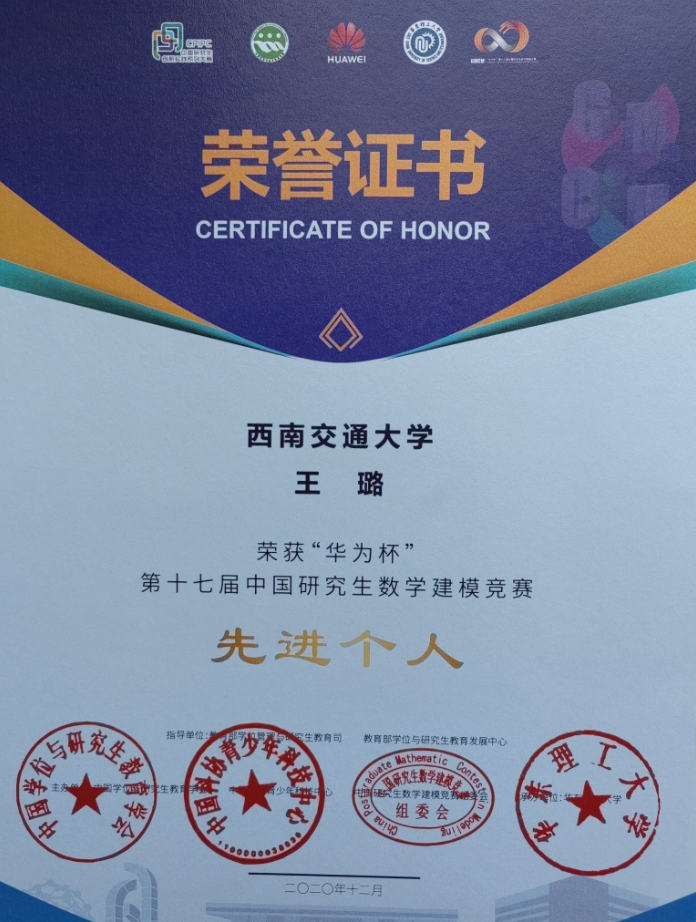 王璐,男,教授,博士生导师。全国大学生数学建模竞赛优秀指导教师,国家级混合式一流课程数学建模负责人,四川省线上一流课程数学建模精讲负责人。自2010年至今指导全国大学生数学建模竞赛共计全国一等奖13项,全国二等奖16项。获得第十七届中国研究生数学建模“先进个人”荣誉称号。