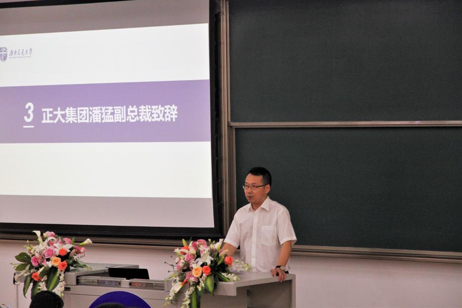 开幕式第二项,由正大集团潘猛副总裁代表企业方致辞,潘猛副总裁向大家简单介绍了正大集团的澳门六合彩开奖结果以及“人才第一、以人为本”的企业理念,鼓励同学们努力拼搏、力争上游,在本次比赛中取得优异成绩。