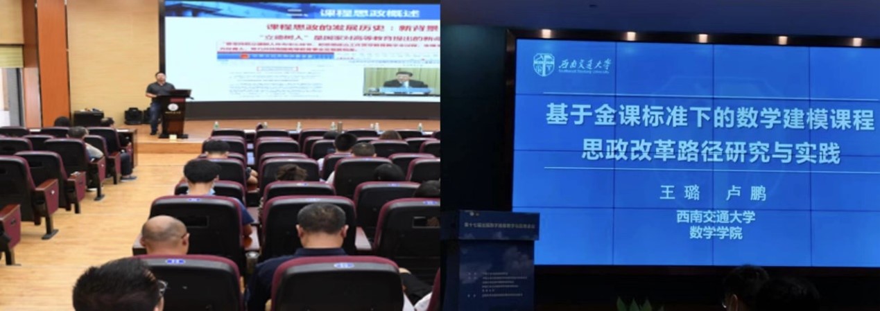 获奖的两位老师从2017年开始,一直从事数学建模课程的思政化建设。在课程建设中,以金课为目标将课程思政融入数学建模课程,从更高的视角对传统教学内容、教学方式、考核要求和教学设计等要素进行了重构:以"五位一体"的方式重构课程内容体系;创新性以开设慕课的形式,内容中融入课程思政元素,同时线上线下共同协作,进行混合式教学;在课程考核中增加课程思政元素的要求,课堂讨论中增加价值取向、探索精神等内容,另外让学生面对真实世界的思政问题。相关教改成果先后在全国数学建模教学与应用会议、全国高校教学发展网络(CHED)2021年会、中国高校第三届教学学术年会、四川省高校教师思政与教师发展研讨会等10余个国内大型会议进行了发言交流。同时多篇课程思政相关教改论文,发表在《大学数学》、《西南交通大学学报(社科版)》、《教学学术》、《川渝通识教育探索》、《西南交通大学教师在线教学研究与探索文集》、《新时代高校数学教学改革与创新研讨会论文集》等杂志中。王璐老师作为负责人建设了以课程思政为特色的《数学建模精讲》MOOC课程、主编并出版了《数学建模及其应用》数字化教材。卢鹏老师先后获得第二届数学建模微课程案例大赛全国一等奖、第九届西南交通大学青年教师教学竞赛一等奖、第五届四川省青年教师教学竞赛三等奖等。