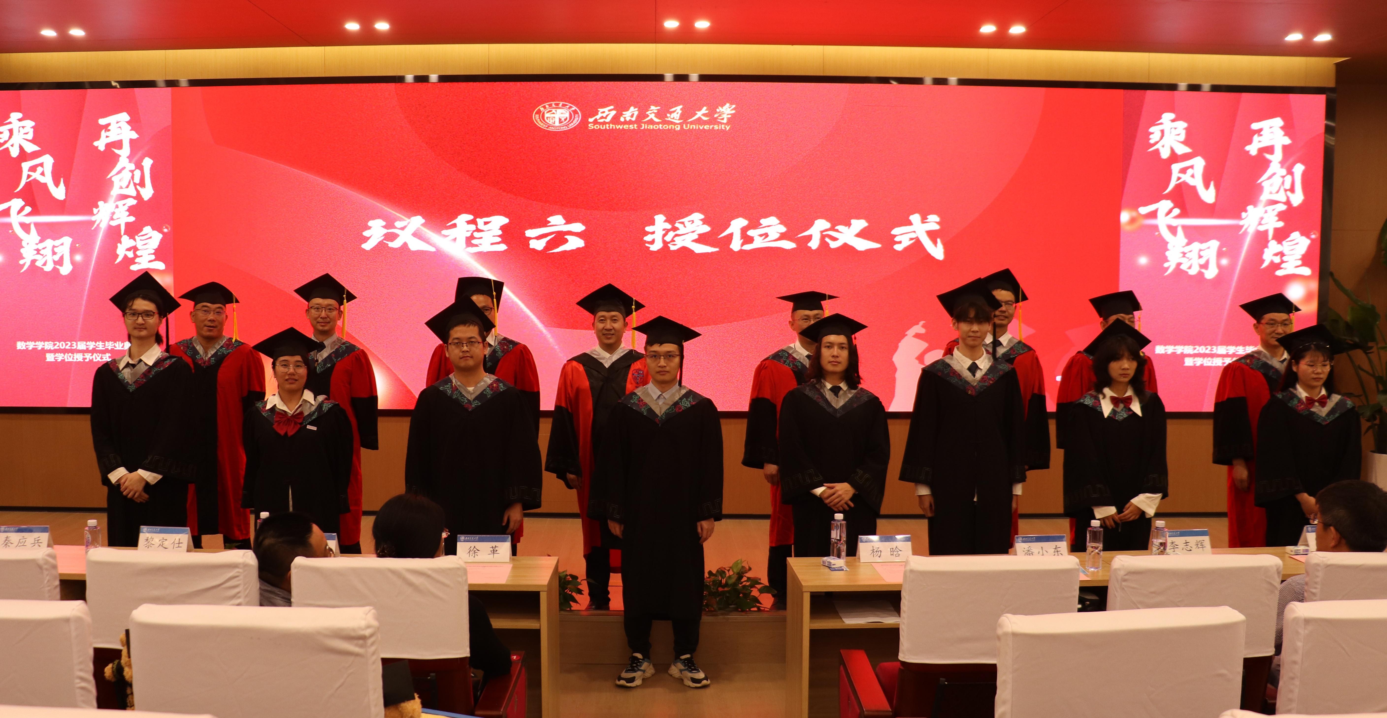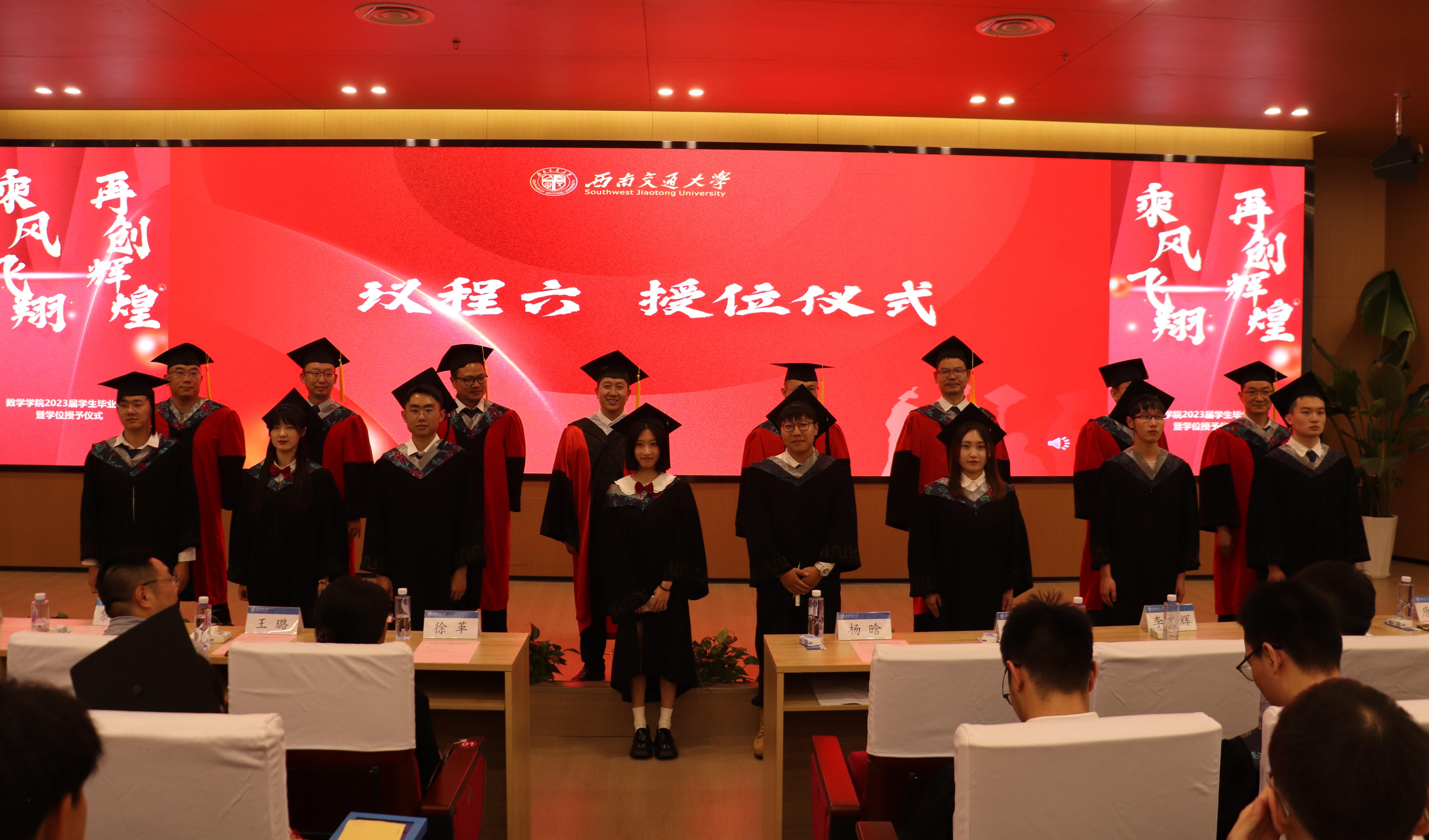 杨晗教授、黎定仕教授、杨洋教授、范小明教授、潘小东副教授、刘品副教授、唐家银副教授、罗荣副教授到主席台前为全体2023届毕业生授位