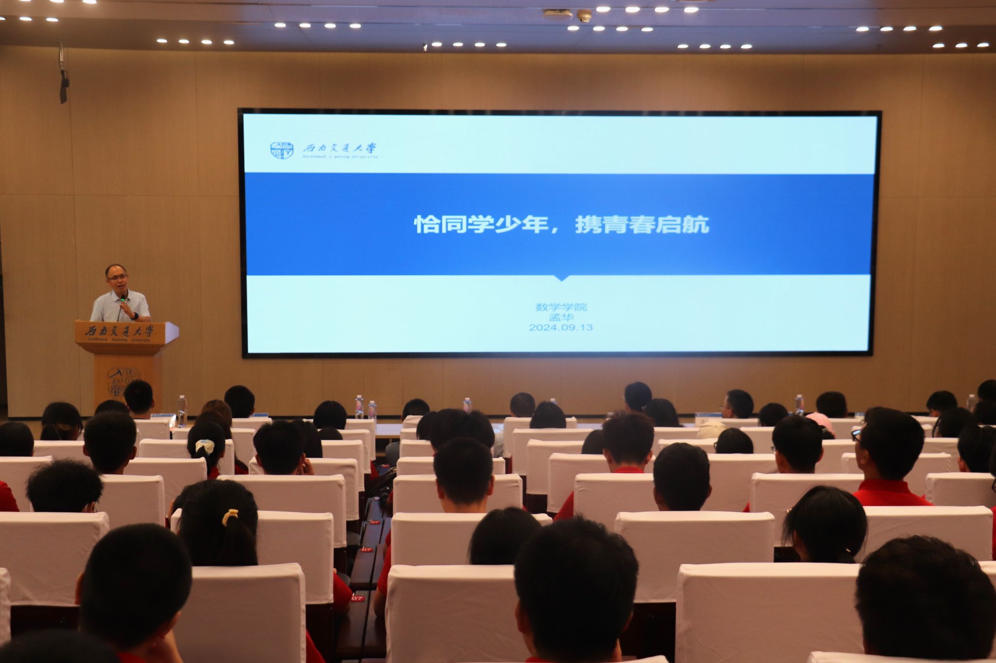 的成长历程与学习感悟,他鼓励同学们做一个博闻强志、志存高远的数学人,学会寻求帮助,在协同进步中发现数学之美,并坚持锻炼,拥有健康的身体,面对挫折抛却杂念,面对选择坚定信念,以实际行动书写人生华章。