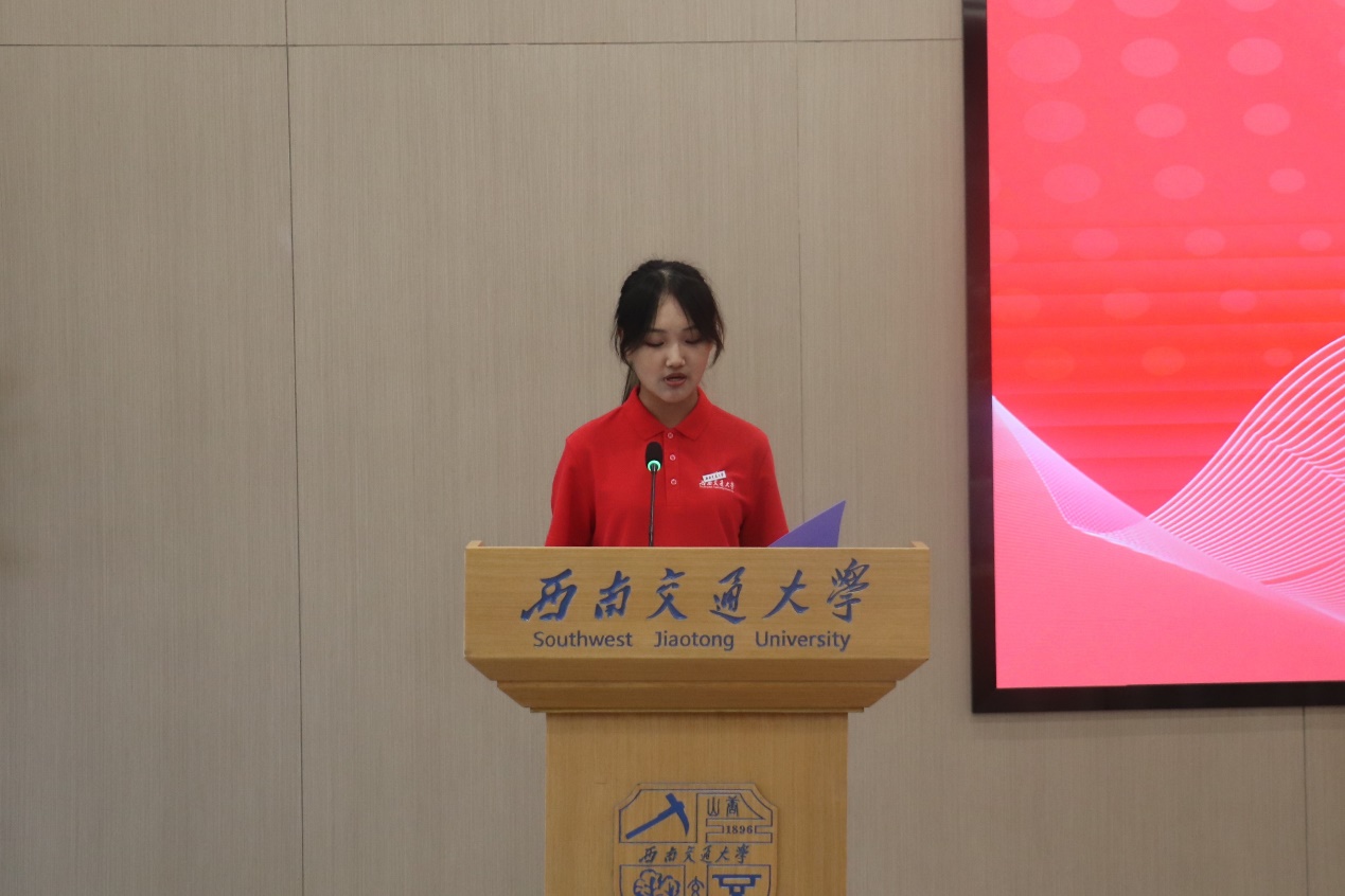 议程第五项,本科生新生代表吕思辰发言。她先向给予她陪伴与支持的家人、师长和同学们道以最诚挚的感谢,并表示大学要绽放出自己的精彩,与新时代同向同行,秉持“竢实扬华、自强不息”的交大精神,以青春之我、奋斗之我,乘风破浪,书写青春华章。